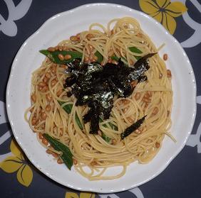 ですね。ほんだし、醤油をもう少し多く入れればよかったです。変わりパスタとしては面白いと思い