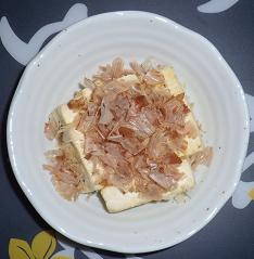 前回はあんかけにしましたが、今回はシンプルにかつお節だけにしました。あと、木綿をやめて、