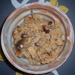 3.2.にシメジ、油揚げを入れ、米を炊く。