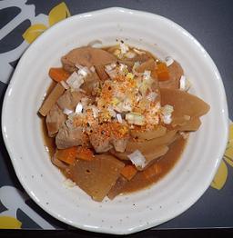 煮込みの味付け用に白味噌だけを使い、仕上げに赤味噌を加えるという強硬策に出ました。まぁ