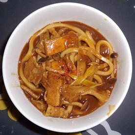 5.茹でたうどんを器に盛り、4.を上から掛けて完成。お好みで七味を振っても良い。