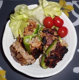5.しっかり焼き目がついたらひっくり返して、ピーマンに焼き目がつくまで焼く。