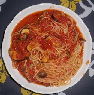 トマトソースパスタのレシピが固まってきたので、まだ試したことのない食材と
