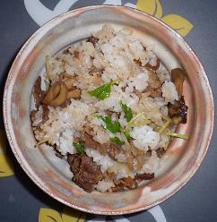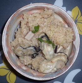 3.2.に牡蠣、シイタケを入れ、お米を炊く。
